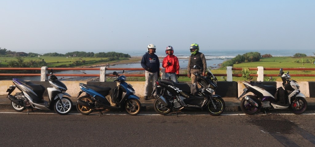 Memasuki waktu subuh, kami sudah berhasil melewati jalur Naringgul dan mulai memasuki jalur pantai selatan Jawa Barat. Kami juga berpapasan dengan beberapa kelompok motor yang juga touring searah dengan kami.